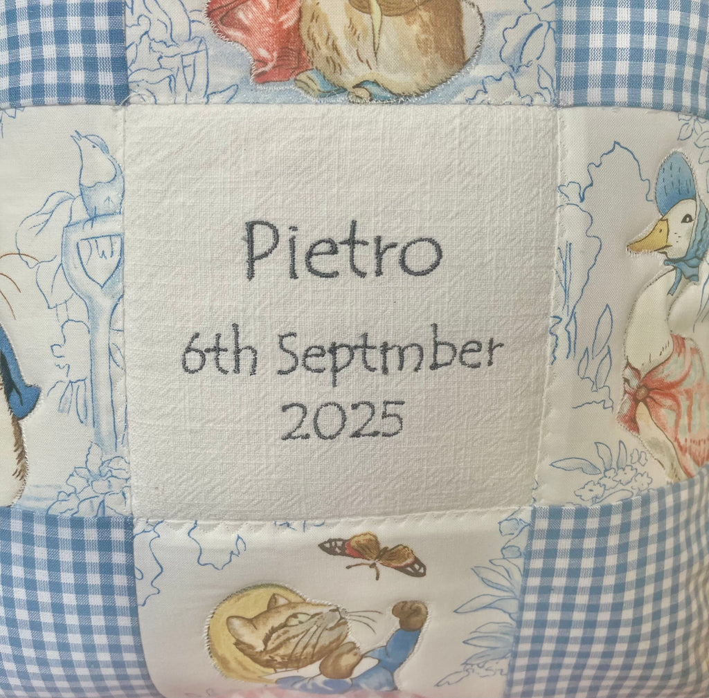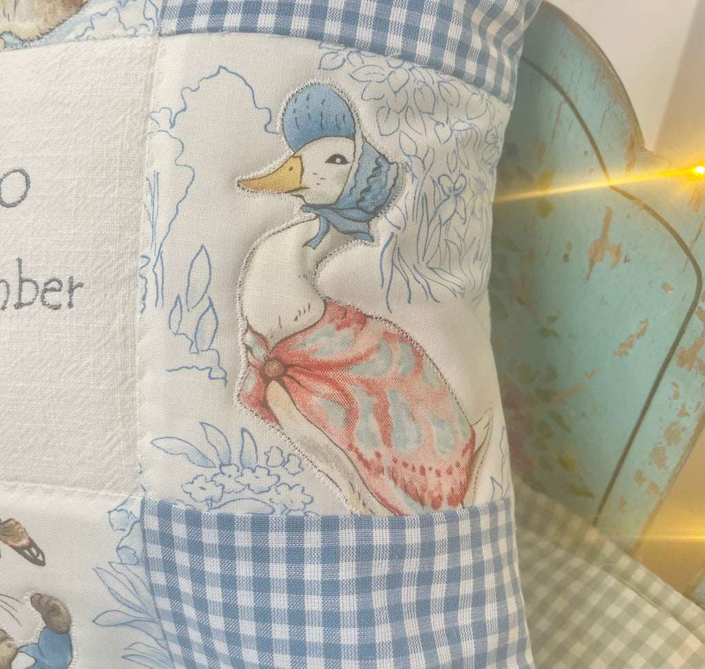 Beatrix Potter© Christening cushion Patchwork Name and Date Cushion