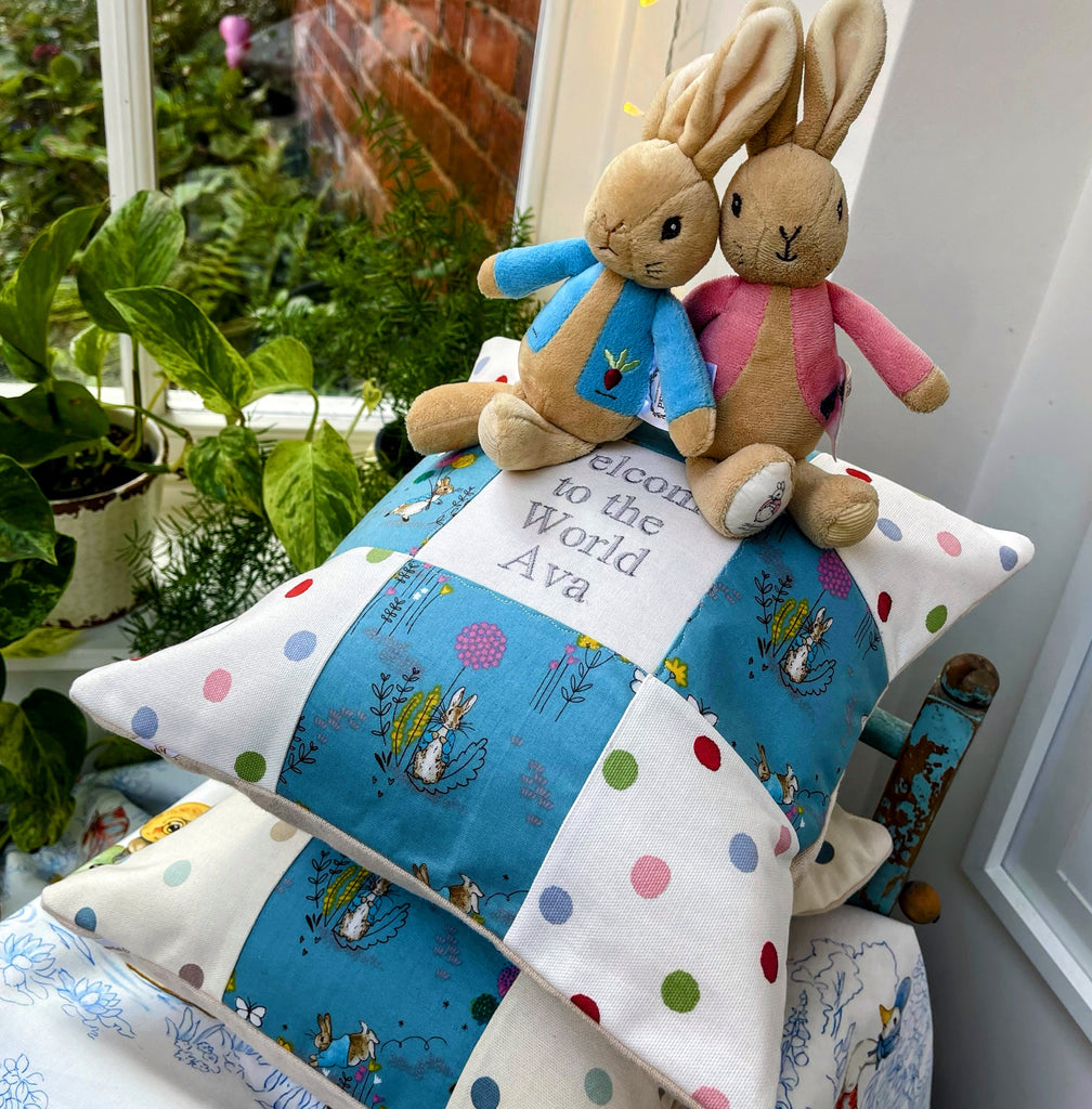This adorable Peter Rabbit cushion is the perfect gift to welcome a new addition to the family.