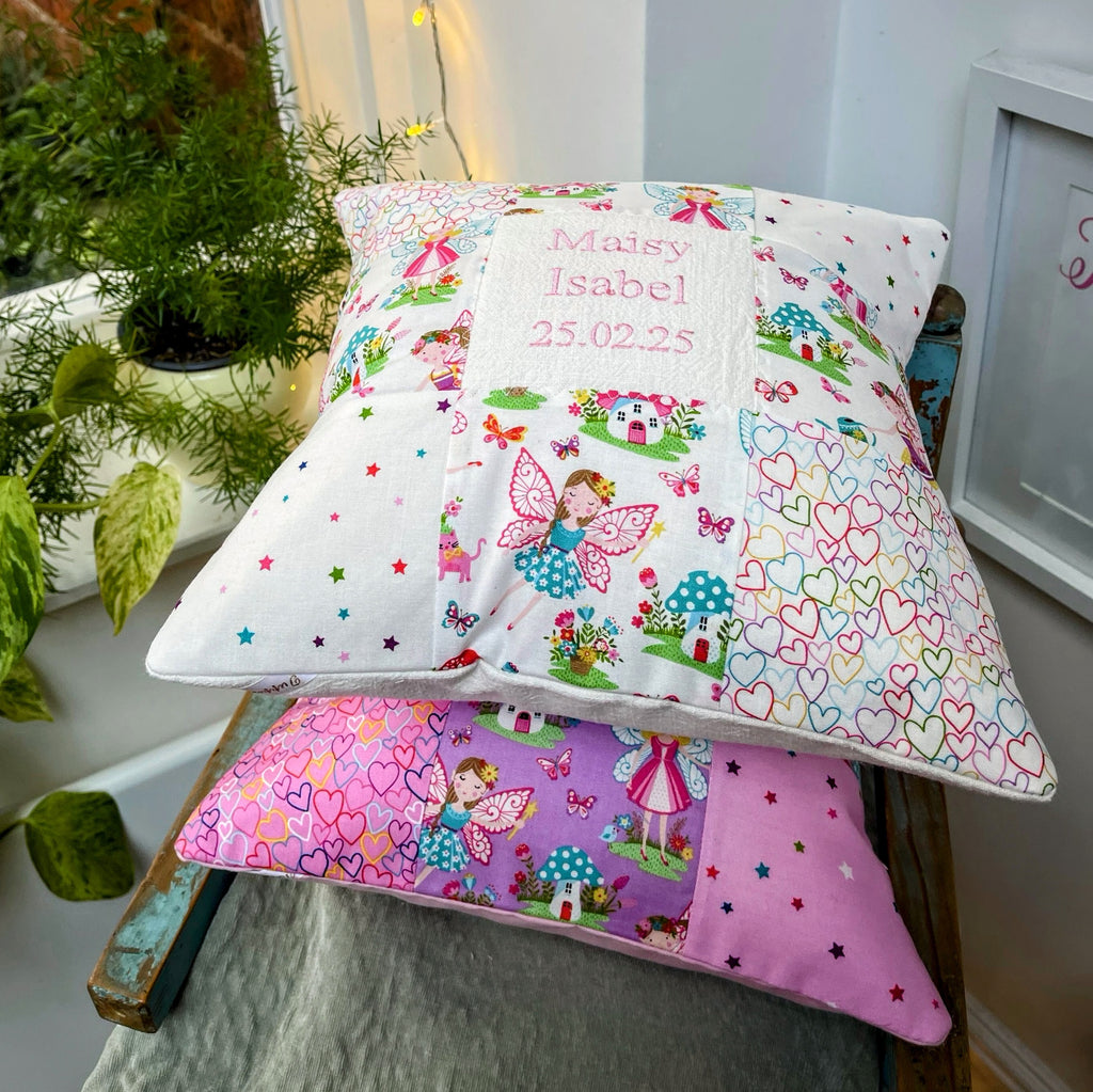 You may like to add a little rag doll or Flopsy Bunny soft toy, which will come tied to the cushion with a satin ribbon.